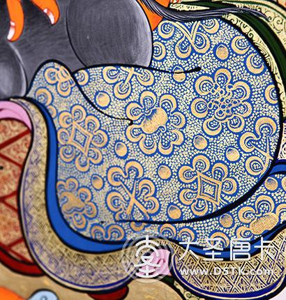 产地:热贡 工艺:朱红唐 创作年份:2017 题材:布置 绘制时间:8月 尺寸:*70*100cm 装裱:无裱 材质:织面 使用场地:玄关